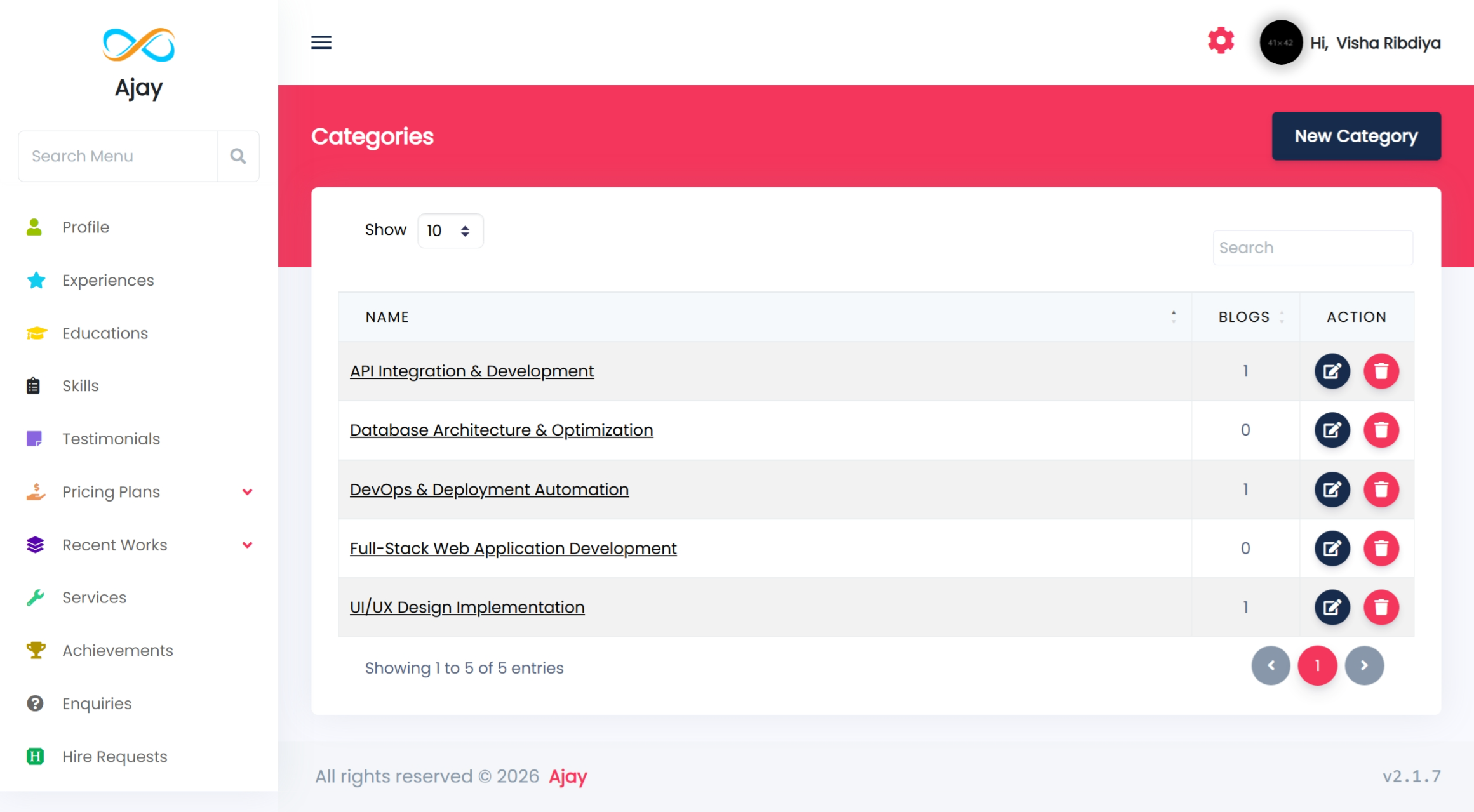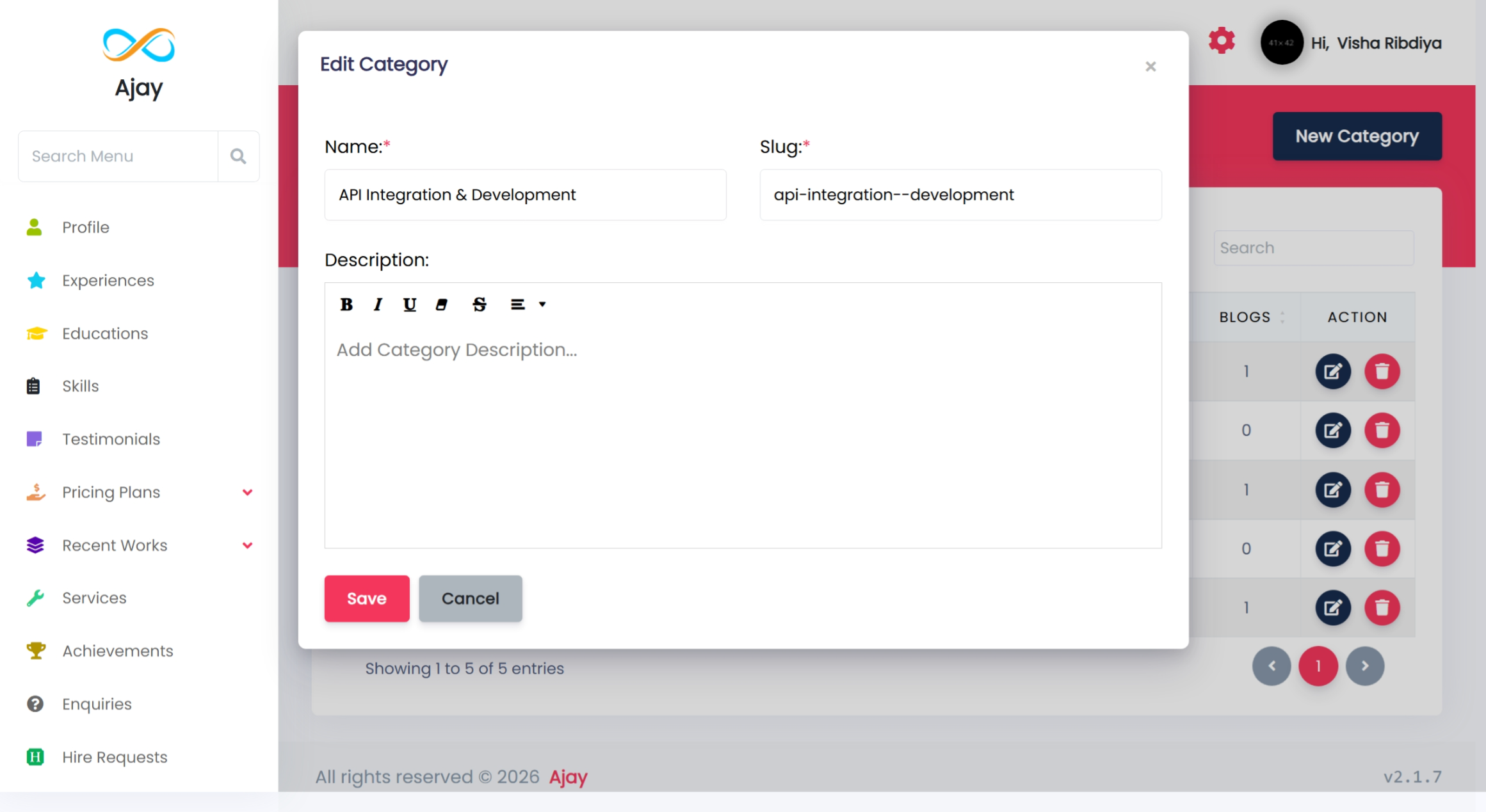 You can add your works by category from the admin side, and it will be displayed on the front side.