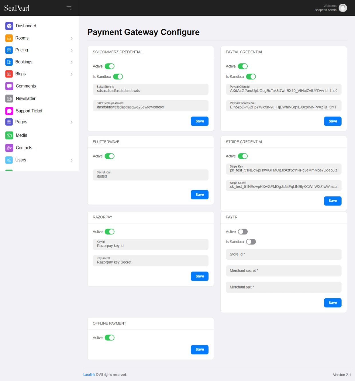Payment Gateway – SeaPearl supports many payment methods like PayPal, Stripe, Razorpay, Flutterwave, SSLCommerz, PayTr…