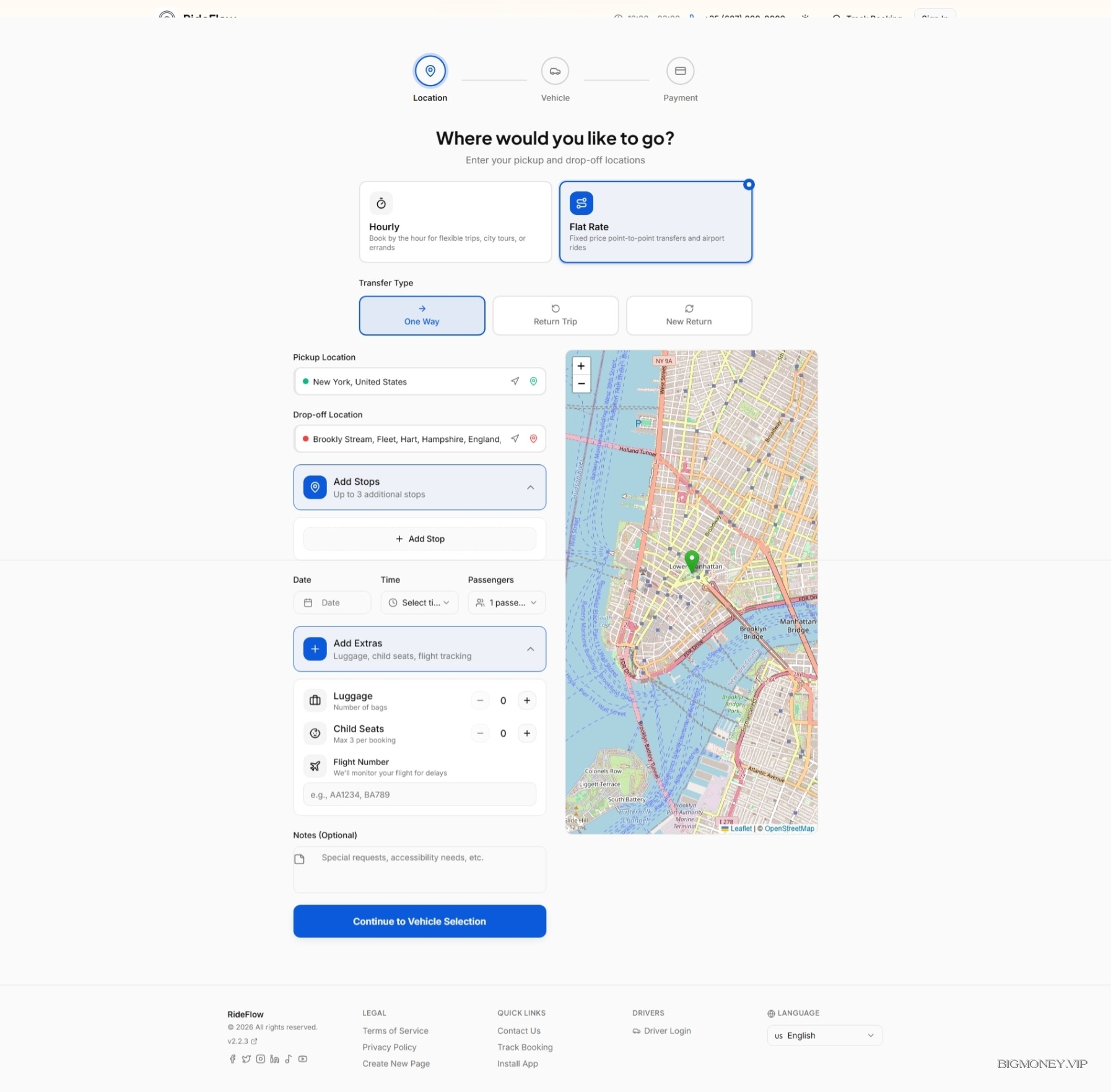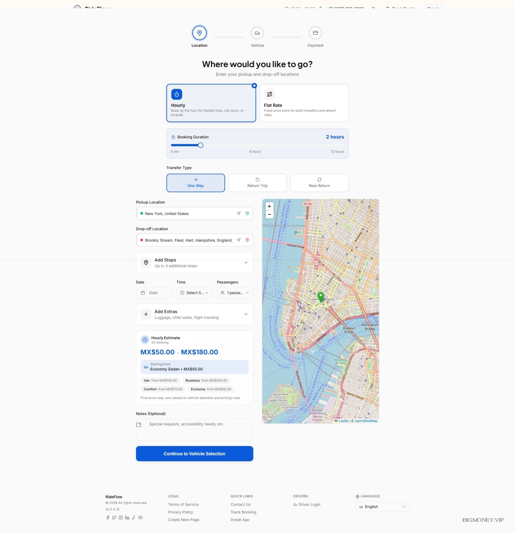 RideFlow features a streamlined booking process that converts visitors into customers: